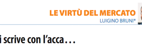 Si riporta, ringraziando “Il Messaggero di Sant’Antonio“, un contributo da uno dei partner di Spazio fratto tempo, Luigino Bruni, economista e storico con interessi in filosofia e teologia.